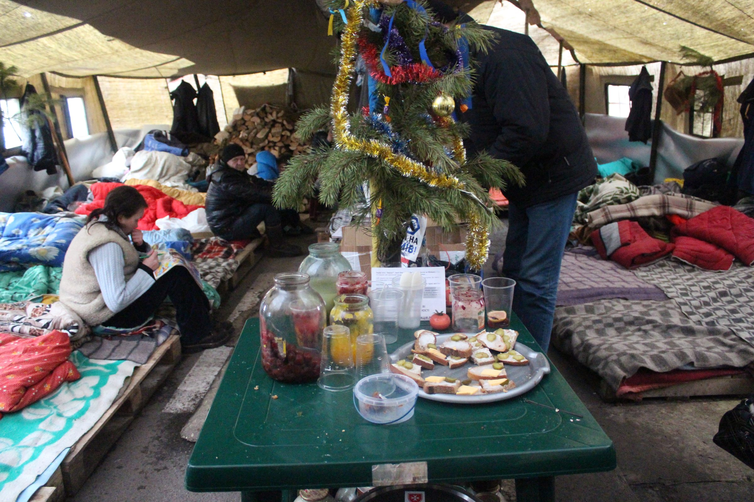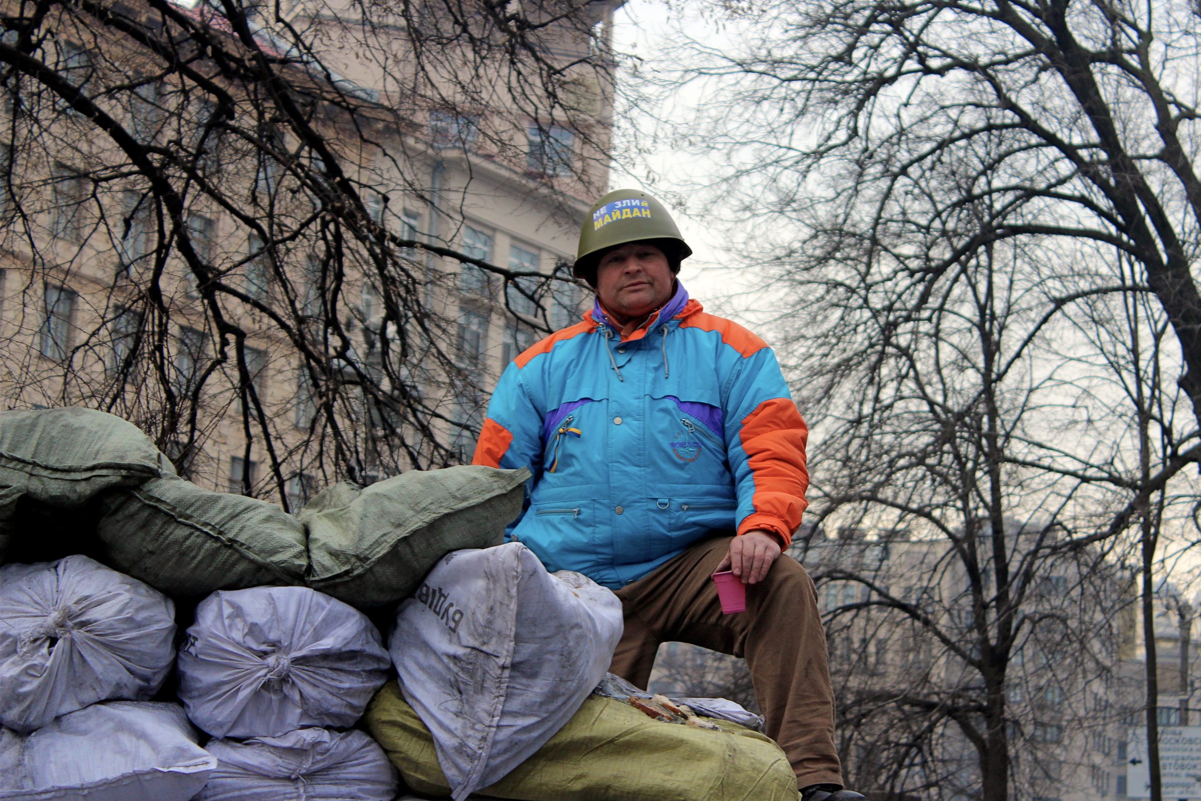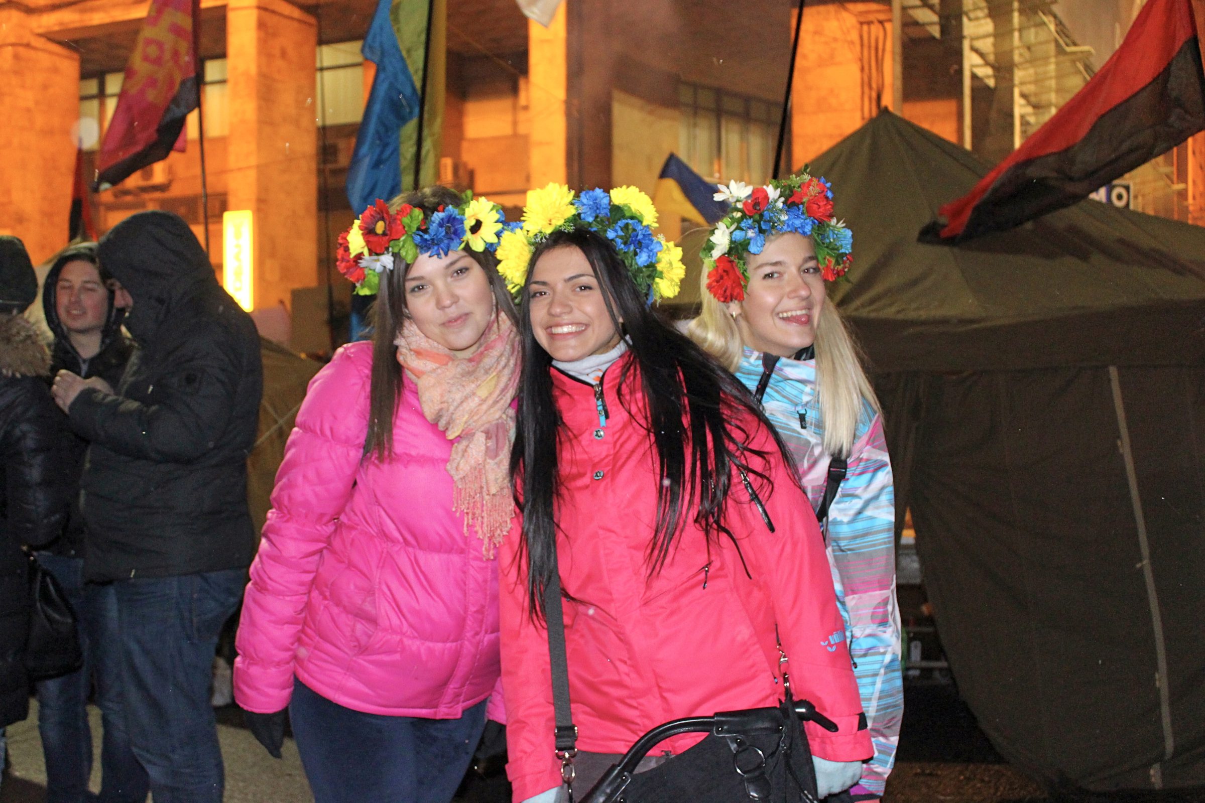Within a week of the violence, protesters set up tents on Maidan and established a perimeter around their new camp, complete with kitchens, first-aid huts, and a multi-faith chapel. The mood was happy, even euphoric, as hundreds of thousands of people marched for the civil rights of the Ukrainian people. People sang folk songs, hung Ukrainian flags, and danced around campfires in displays of patriotism. We were hopeful about Ukraine’s future, even as barricades built out of park benches and pieces of the dismantled national Christmas tree, called the Yolka, reminded everyone why they stood on Maidan, protesting in below-freezing temperatures.