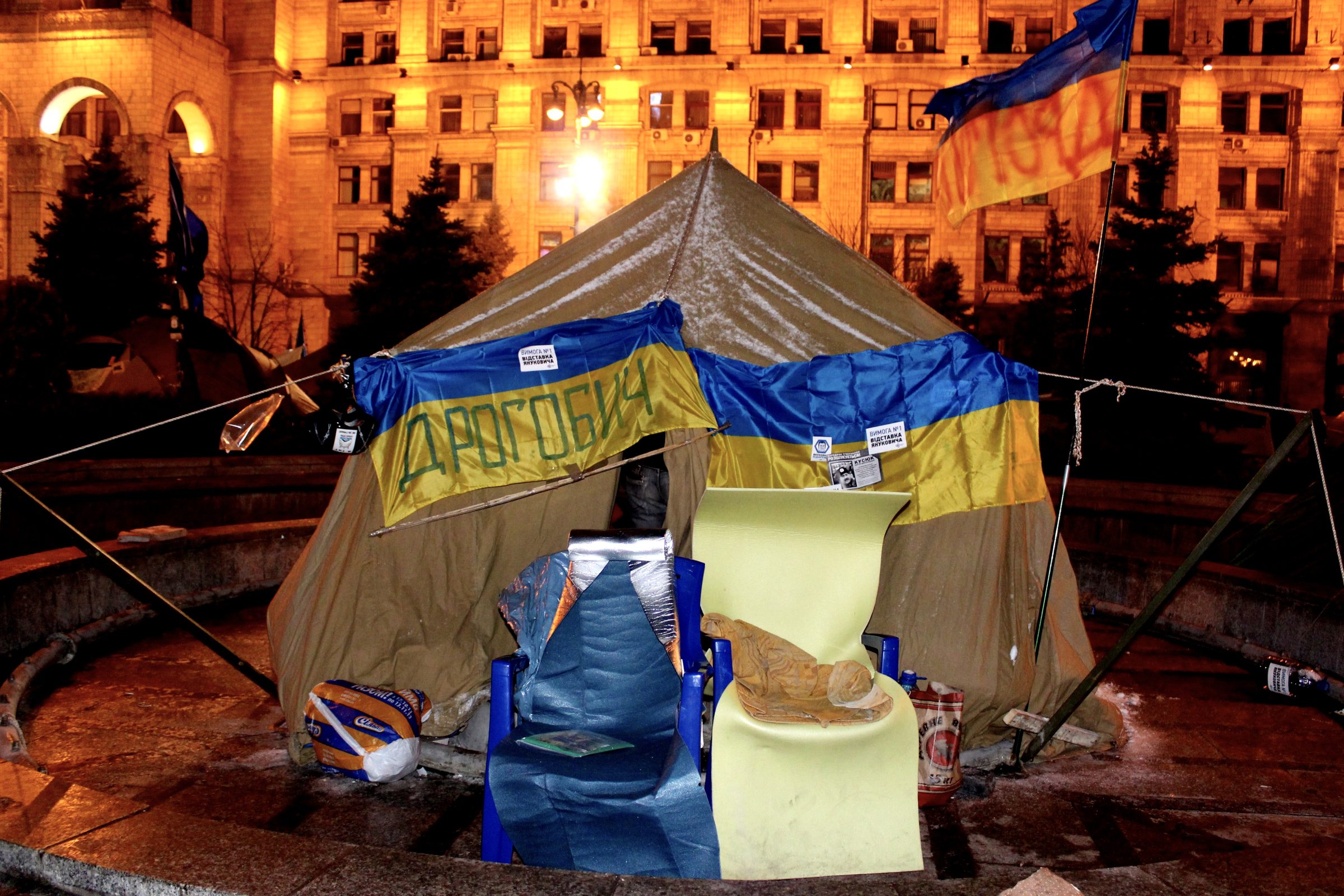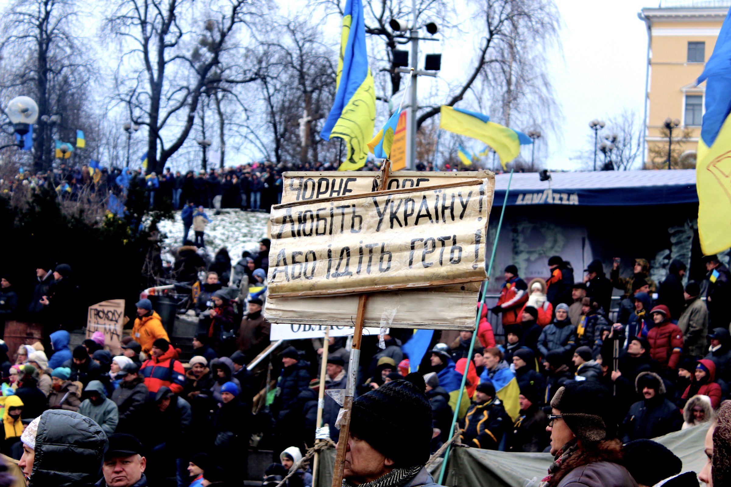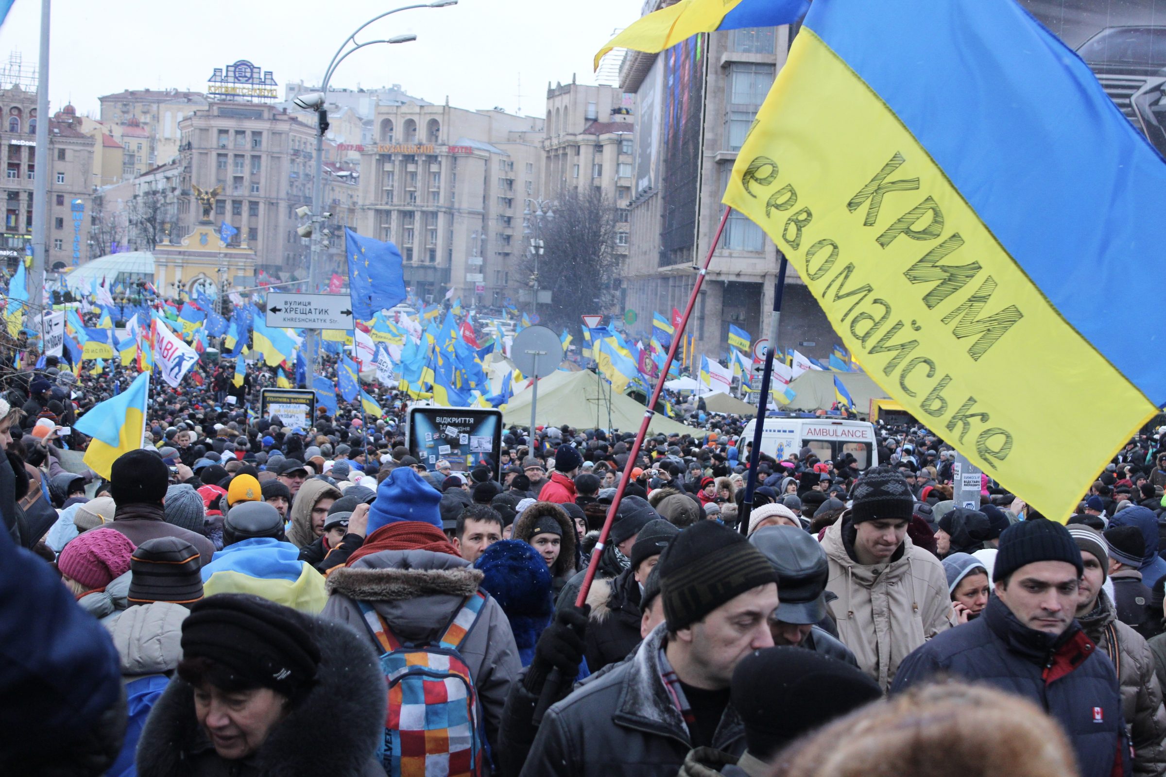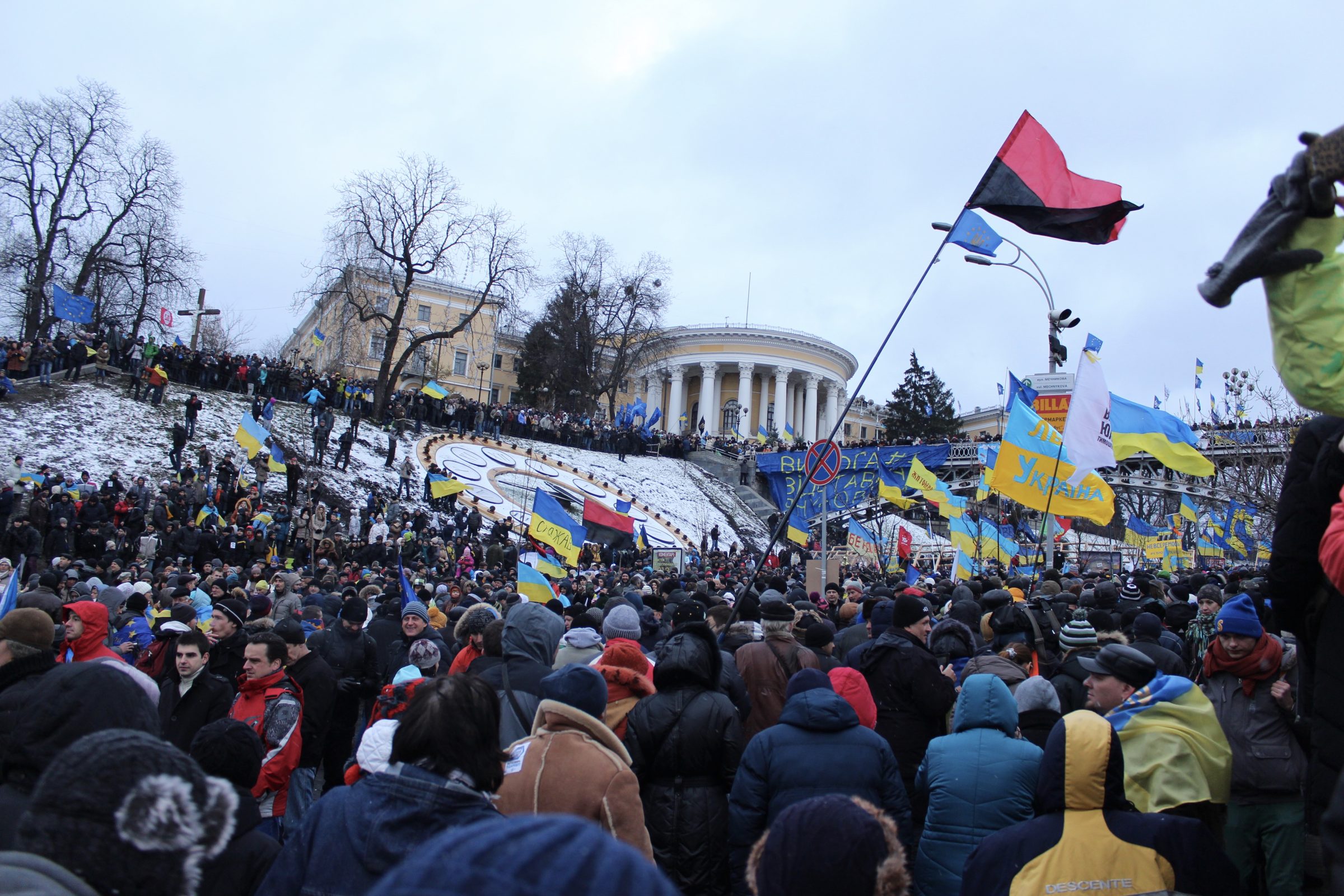 That evening, in a Facebook post, Afghani-Ukrainian activist and journalist Mustafa Nayyem called on the Ukrainian people to gather in the center of Kyiv at Maidan Nezalezhnosti, or Independence Square, to demonstrate their support for the E.U. Association Agreement and protest the president’s consideration of closer ties with Russia. At the time, few imagined that the demonstration at Maidan would attract more than a few thousand people. But by the end of the week, crowds of Ukrainians hundreds of thousands of people strong (estimates varied widely, ranging from 200,000 to 2,000,000) had joined the self-named Euromaidan movement in Kyiv.