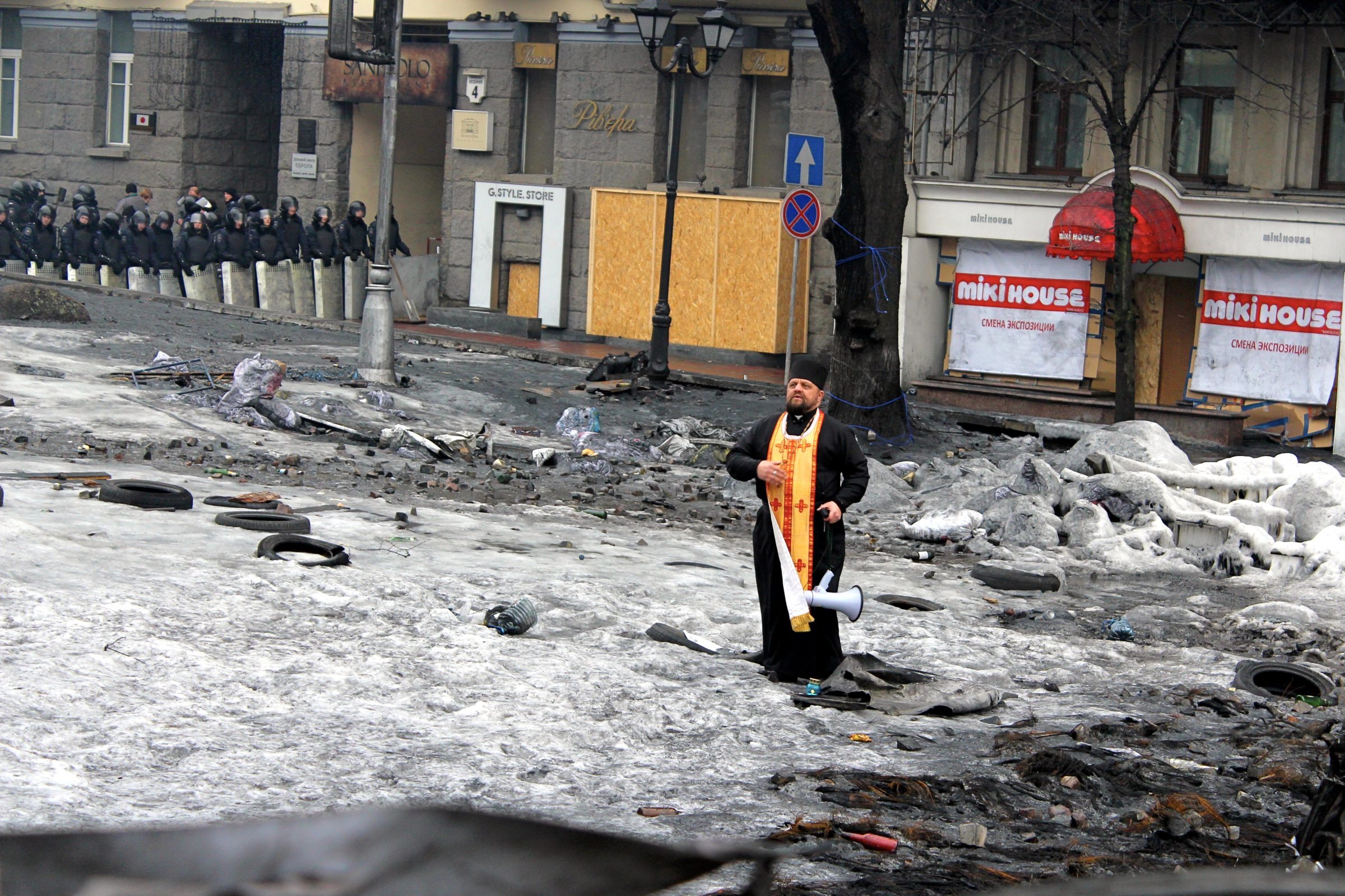 On January 19, as I was leaving the ninth Sunday Meeting, a weekly mass protest, a commotion broke out on Hrushevskoho Street, about a block from Maidan. People were running and yelling, telling women and children to “go the other way.”